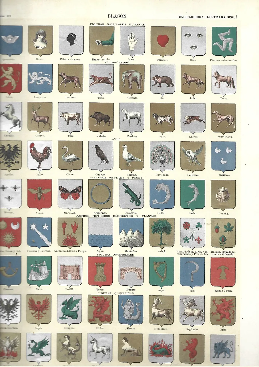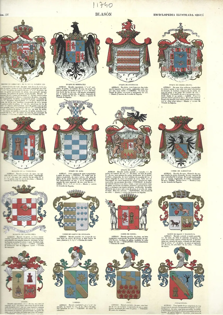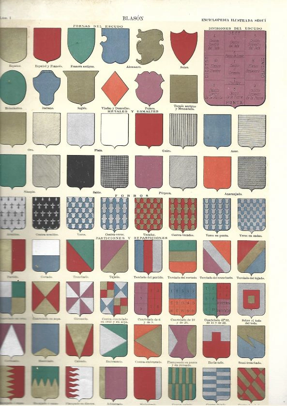 2 lamina prox 1910 BLASON, escudos, particiones, piezas honorables, figuras humanas, blasones españoles prox 1910 23×32 cm doblado por la mitad