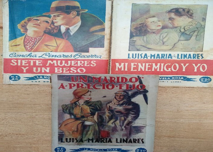 3 novelas rosa, las de la foto, estado normal bueno, LUISA MARIA LINARES,mi enemigo y yo , un marido a precio fijo ,,,CONCHA LINARES BECERRA siete mujeres y un beso, cantidad
