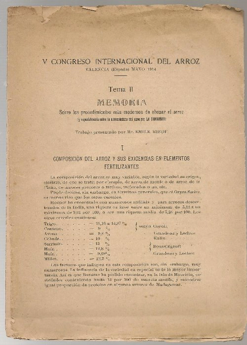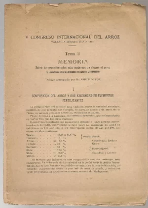5º CONGRESO INTERNACIONAL DEL ARROZ. TEMA II MEMORIA SOBRE LOS PROCEDIMIENTOS MAS MODERNOS PARA ABONAR EL ARROZ