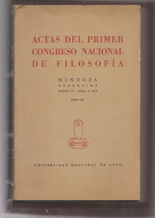 ACTAS DEL PRIMER CONGRESO NACIONAL DE FILOSOFIA tomo III, Mendoza 1949 (estética, epistemología, filosofia de la historia , de la educación, del derecho y la política, historia de la filosofía )