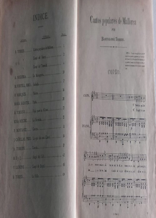 ALBUM MUSICAL DE COMPOSITORES MALLORQUINES (B.TORRES: cantos populares de Mallorca,canço del Batrer,canço del Trescolá, A.NOGUERA :la Balauguera ,M.FORTELL :Aubada, M.MARQUES:Fatima, MARIA SABATER: patria A.TORRENS:hoja para un album, ROSA MESTRE: la se