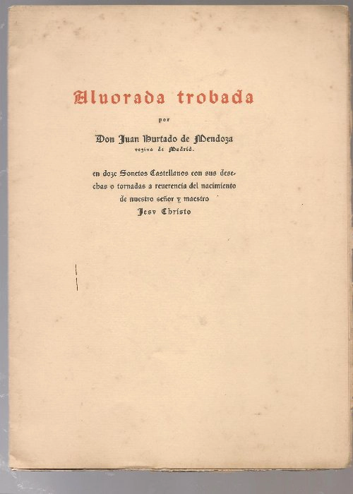ALVORADA TROBADA en doze Sonetos Castellanos con sus desechas o tornadas a reverencia del nacimiento de nuestro señor y maestro Jesu Christo.