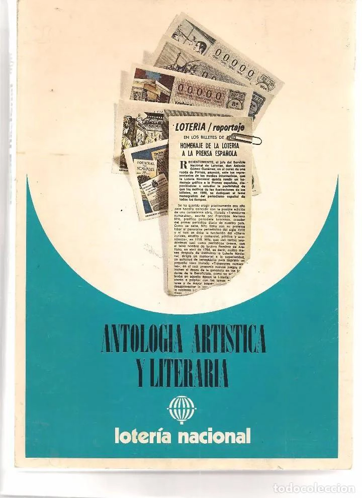 ANTOLOGIA ARTISTICA Y LITERARIA DE LA LOTERIA NACIONAL 1958-1977.PROL F.RODRIGUEZ CIRUGEDA.EPILOGO A.GOMEZ GUTIERREZ sin numerar papel couche, muy ilustrado fot, dibujos, carteles,y motivos de la Loteria en general