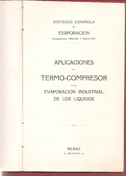APLICACIONES DEL TERMO COMPRESOR A LA EVAPORACION INDUSTRIAL DE LOS LIQUIDOS BILBAO