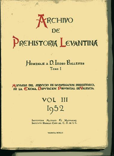 ARCHIVO DE PREHISTORIA LEVANTINA. VOL III ,HOMENAJE A D. ISIDRO BALLESTER TORMO articulos arqueologicos monograficos de Gandia, Alcoy, Valencia y otras localidades