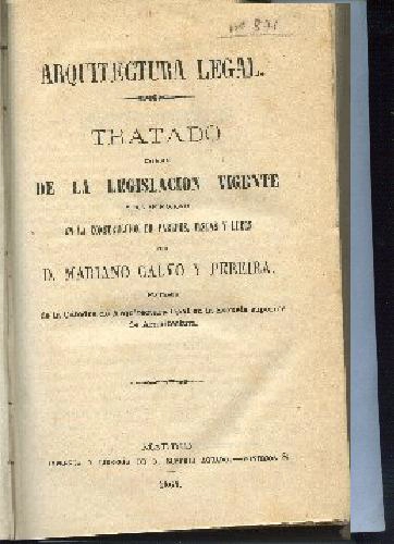 ARQUITECTURA LEGAL, TRATADO ESPECIAL DE LA LEGISLACION VIGENTE y sus aplicaciones en la construcción de paredes, vistas y luces