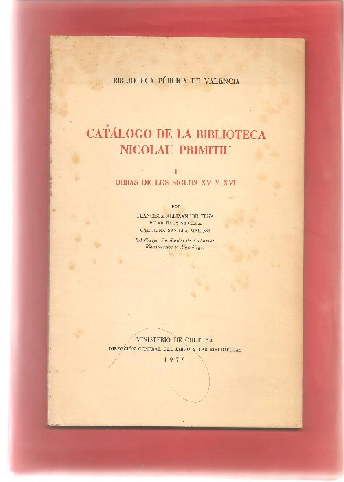 CATALOGO DE LA BIBLIOTECA NICOLAU PRIMITIU, OBRAS DE LOS SIGLOS XV Y XVI