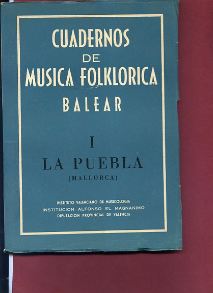CUADERNOS DE MUSICA FOLKLORICA BALEAR.I LA PUEBLA (MALLORCA) con letras y musica
