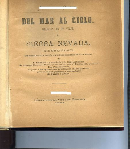 DEL MAR AL CIELO, CRONICA DE UN VIAJE A SIERRA NEVADA ( Granada ), CON UN APENDICE QUE COMPRENDE LA RESEÑA CIENTIFICA DE ESTA REGION