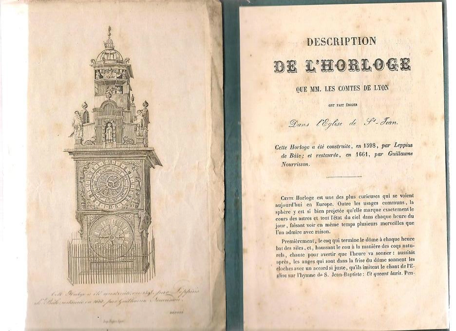 DESCRIPTION DE L`HORLOGE QUE MM les comtes de Lyon on fait eriger dans l`eglise de St Jean , construite en 1598