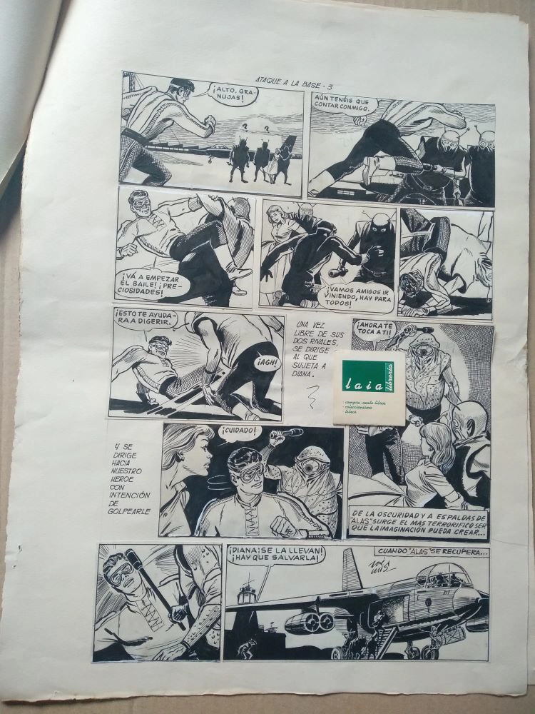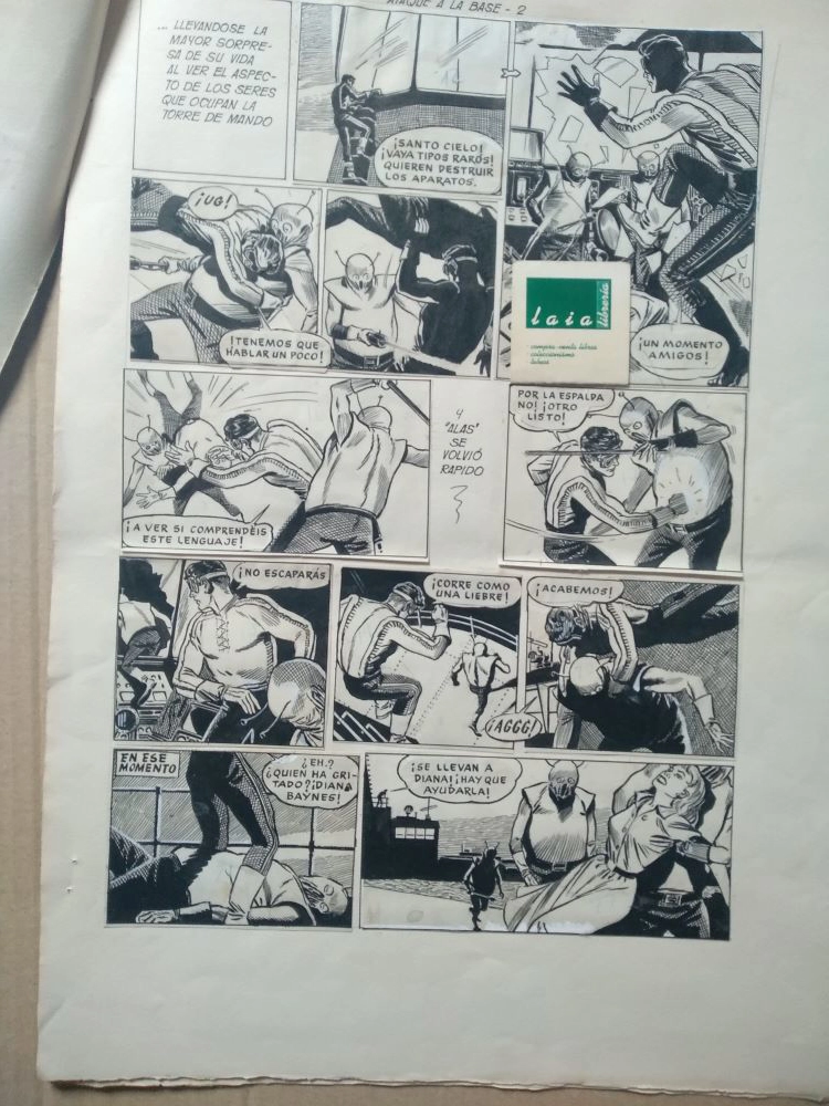 DIBUJO PLUMILLA ORIGINAL ATAQUE A LA BASE, guion J.MARCO , pag 1 2 3 4 , dibujo de , 47x 35 cm , buen estado