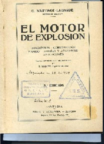 EL MOTOR DE EXPLOSION, descripcion, construccion, manejo, averias y accidentes.trad E.LOZANO