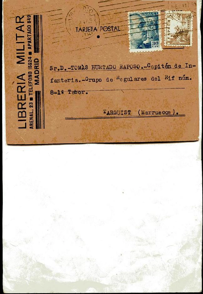 ENTERO POSTAL CIRCULADO DE MADRID A TARGUIST (MARRUECOS ), octubre 1947 sellos y cuño postal, al dorso cuño del destino, 14x 10,5 cm.