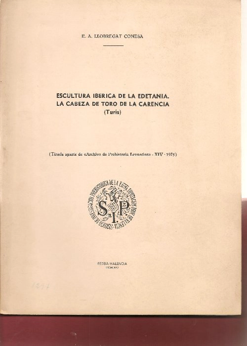 ESCULTURA IBERICA DE LA EDETANIA LA CABEZA DE TORO DE LA CARENCIA, Turis tirada aparte de archivo de prehistoria Levantina IV 1975