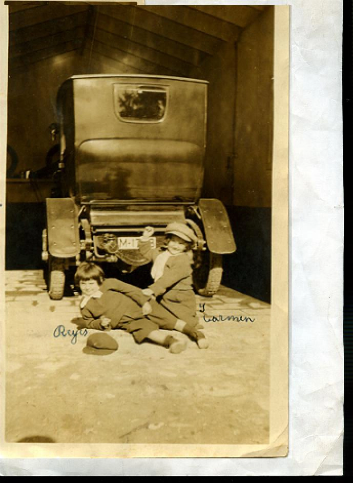 FOTOGRAFIA DE NIÑOS CON COCHE ANTIGUO 1926 en CASTELLON, al dorso PONE MAS DATOS PERSONALES, , 9 x 14,50 cm.