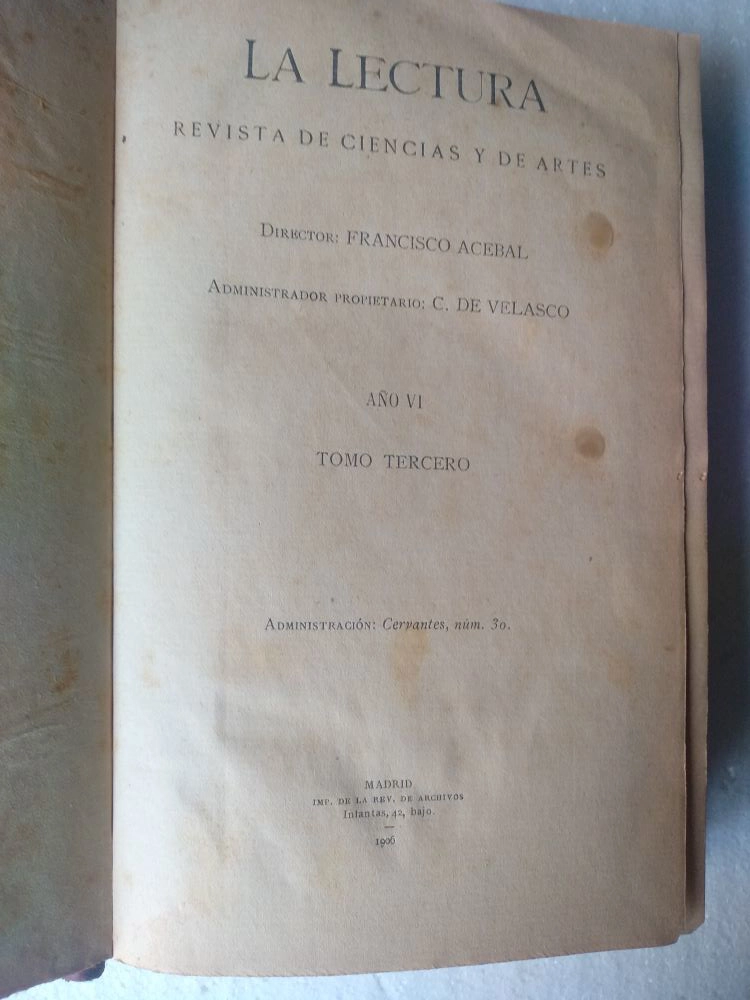 LA LECTURA, REVISTA DE CIENCIAS Y ARTES. DIRECTOS FRANCISCO ACEBAL, AÑO VI, TOMO 3º