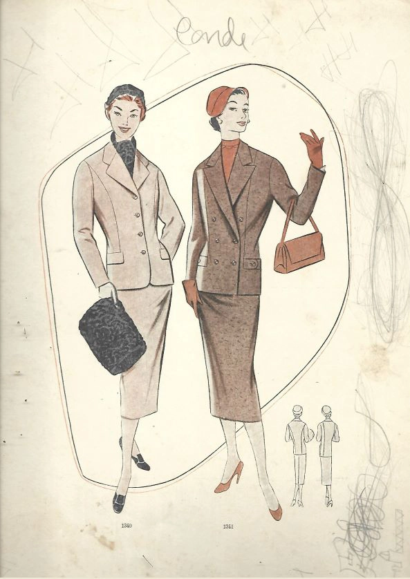 lamina LA MODA ELEGANTE señora A. AUBELLE BARCELONA 1956 31×19 cm doblado por la mitad