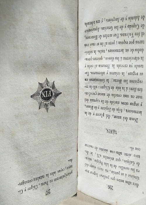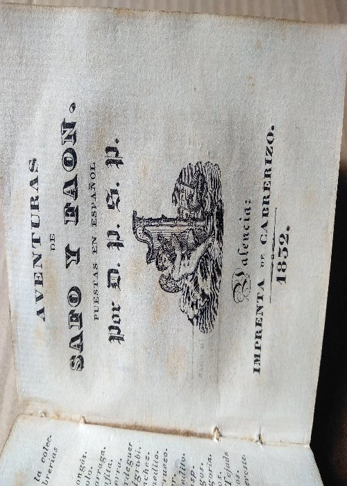 en el mismo volumen sigue AVENTURAS DE SAFO Y FAON puestas en español por D.V.S.P., Cabrerizo 1832, 297 pags+ 5 hojas ,,pesa 200 grs