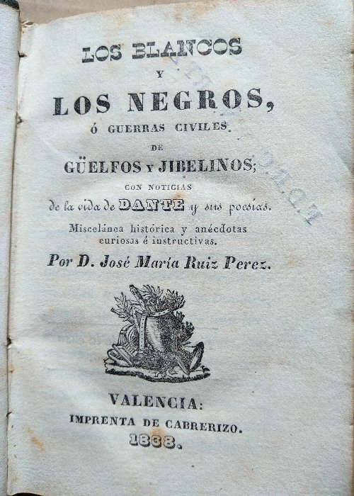 LOS BLANCOS Y LOS NEGROS o guerras civiles de güelfos y gibelinos con noticias de la vida de Dante