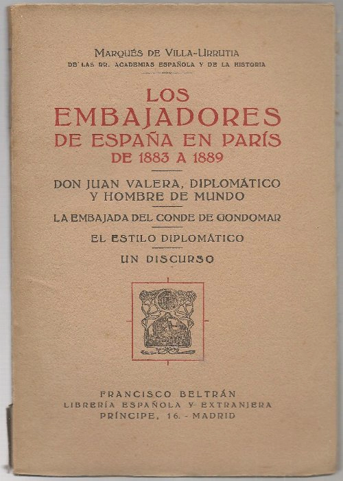 LOS EMBAJADORES DE ESPAÑA EN PARIS DE 1883 A 1889, don Juan Valera diplomático y hombre de mundo