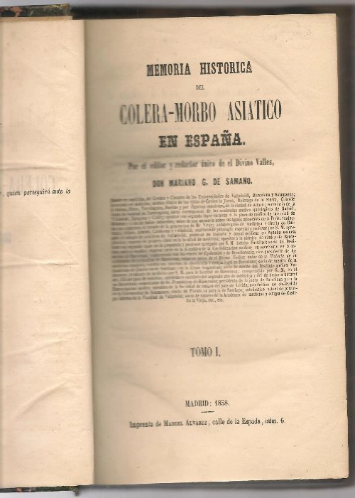 MEMORIA HISTORICA DEL COLERA-MORBO ASIATICO EN ESPAÑA, tomo 1º,con especial reseña de las epidemias de 1833 y 1853