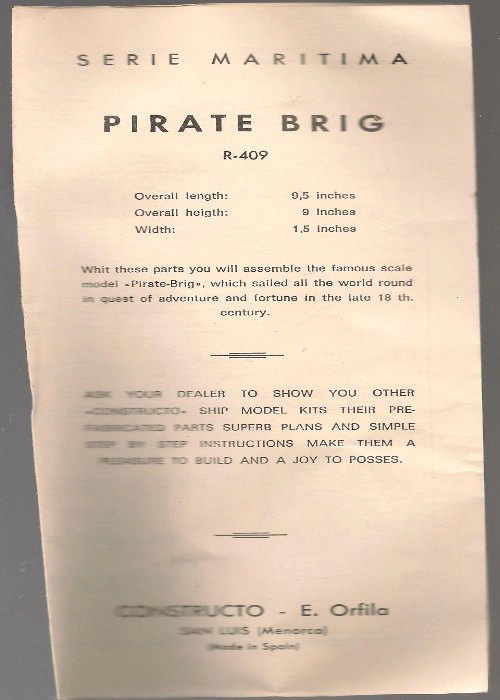 PIRATE BRIG R – 409,maqueta para montar barco pirata,caja cartón 5x11x 26 cm, con instrucciones ni escala, Menorca, pequeños roces en la caja