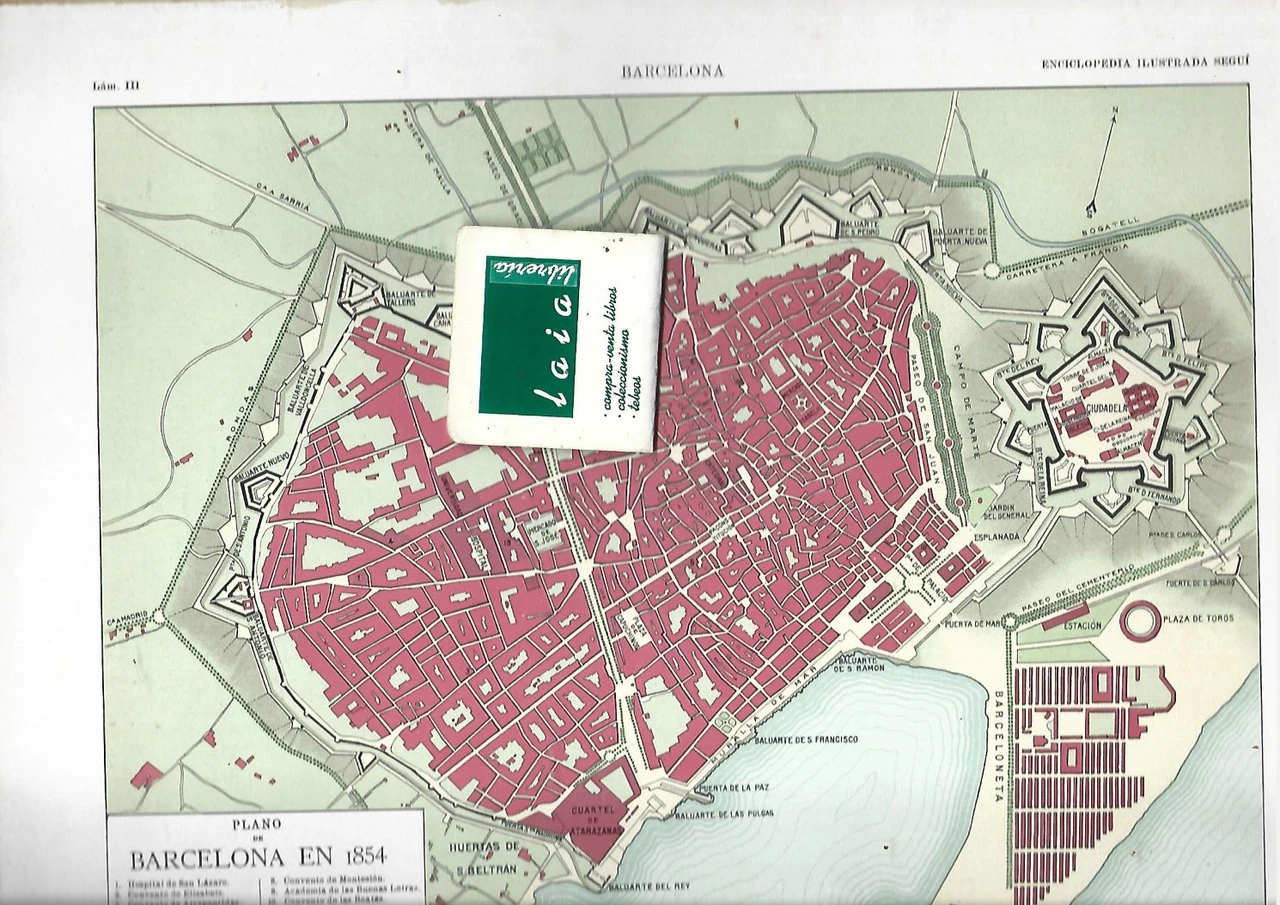 plano BARCELONA en 1854, 23×32 cm y al dorso uno doble 32x 47 cm