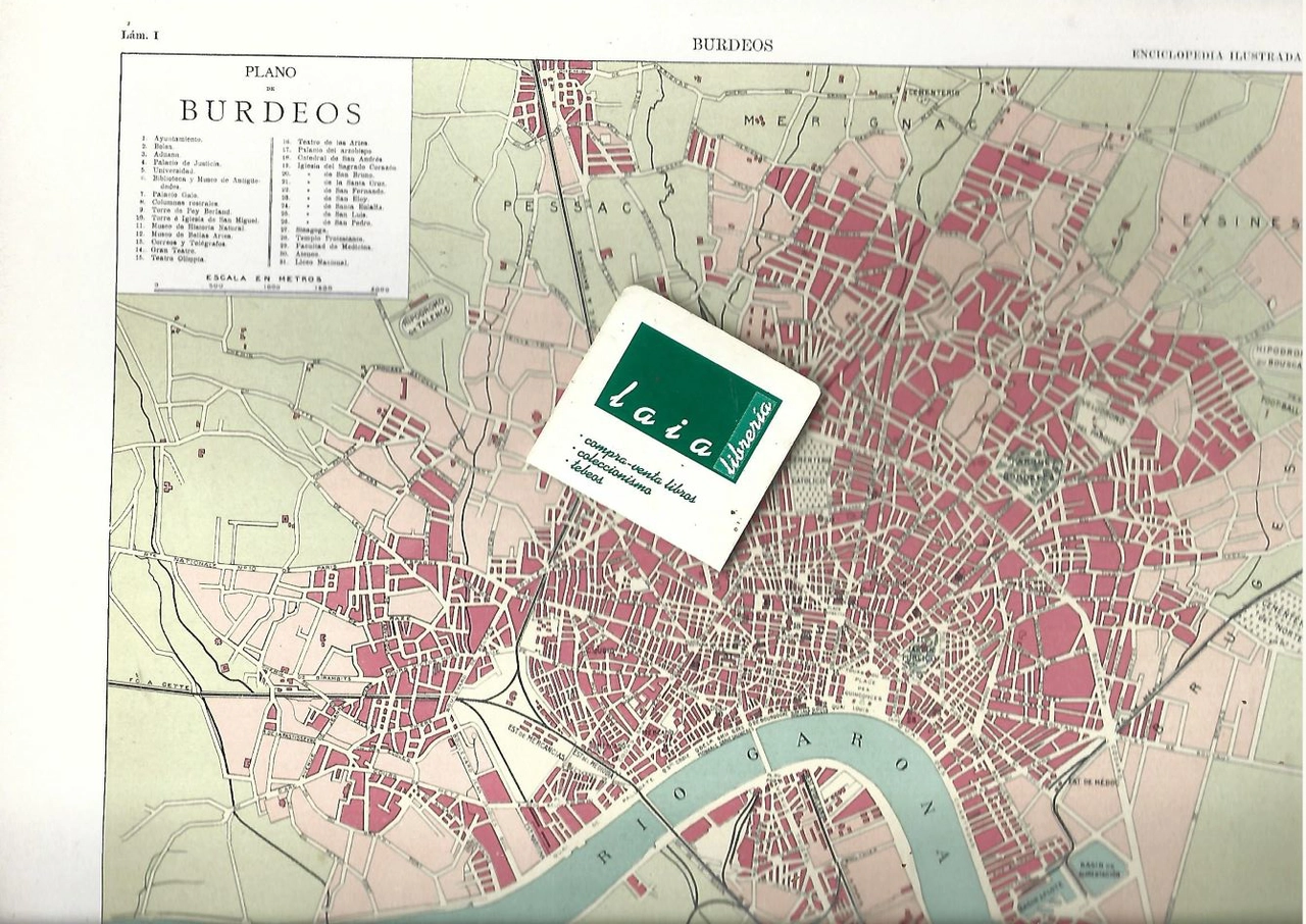 plano BURDEOS 23×32 cm prox 1910 y al dorso fotos de la ciudad de la epoca