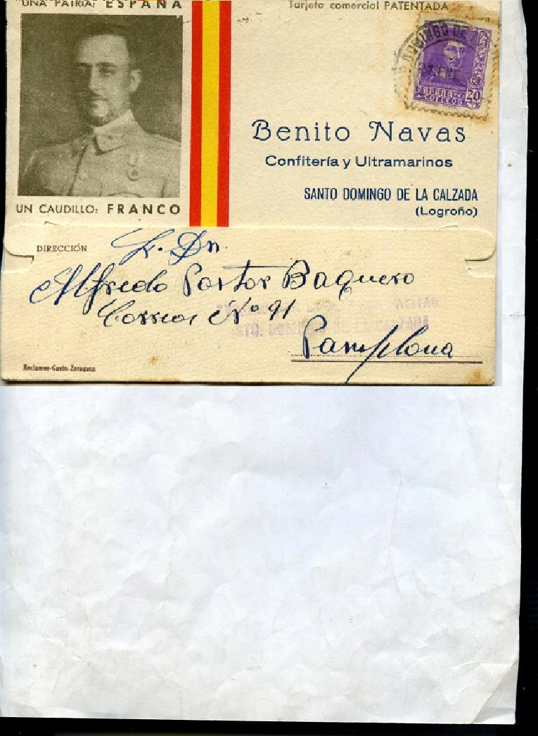 POSTAL COMERCIAL, cuño DAVID TORRECILLAS, HARO, edición imp Viela,Haro escrita y circulada en 1938, guerra civil