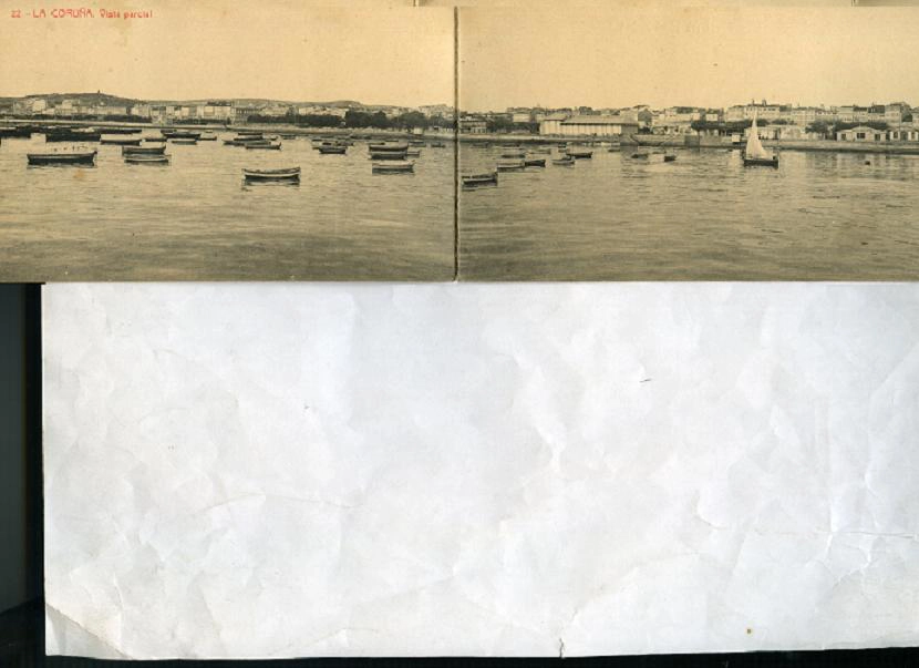 POSTAL CUADRUPLE LA CORUÑA,,vista parcial, ,22 ed THOMAS , sin circular,años 30, 56x 9 cm., se corta en los pliegues aunque esta bien, alguna mancha trasera