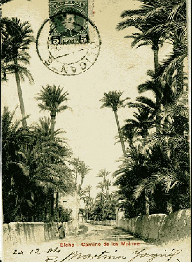 POSTAL ELCHE. Camino de los molinos, PZ 10076, circulada y escrita 1904