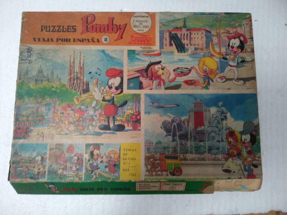 PUZZLES PUMBY PAYA , viaja por España 2, caja con 3 laminas para construir 250x 300 mm, Madrid, Sevilla ,las piezas estan en bolsa sin abrir
