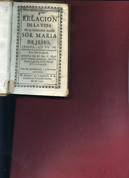 RELACION DE LA VIDA DE LA VENERABLE SOR MARIA DE JESUS, ABADESA DEL CONVENTO DE LA PURISIMA CONCEPCION DE LA VILLA DE AGREDA