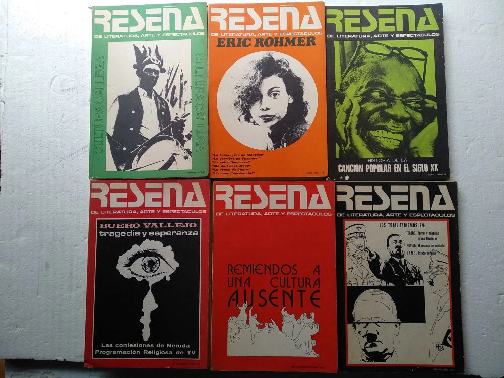 RESEÑA DE LITERATURA ARTE Y ESPECTACULOS ,40 revistas , 6 de 1974 (73,74,75) 9 de 1973 (61 a 65,67,68,69,70) 7 de 1972 (52,53,54,56,58.59,60) 10 de 1971 (41 a 50) 8 de 1970 (31,32,33,34,35,37,38,40)