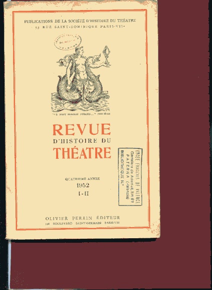 REVUE HISTOIRE DU THEATRE 1952 I- II