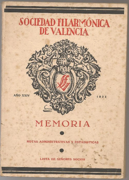 SOCIEDAD FILARMONICA DE VALENCIA MEMORIA 1934, notas administrativas, lista de socios