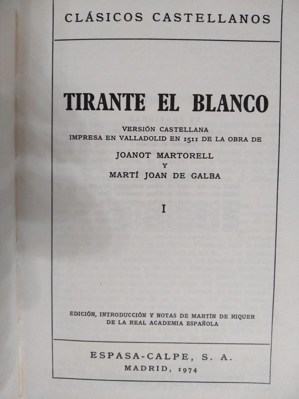 TIRANTE EL BLANCO impresa en 1511 de la obra de JOANOT MARTORELL Y MARTI JOAN DE GALBA, 4 tomos, II III IV y V
