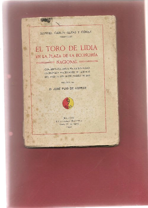 TORO DE LIDIA EN LA PLAZA DE LA ECONOMÍA NACIONAL. CONFERENCÍA LEÍDA EN LA SOCIEDAD ECONÓMICA MATRITENSE DE AMIGOS DEL PAÍS EL DÍA 30 DE MARZO DE 1932