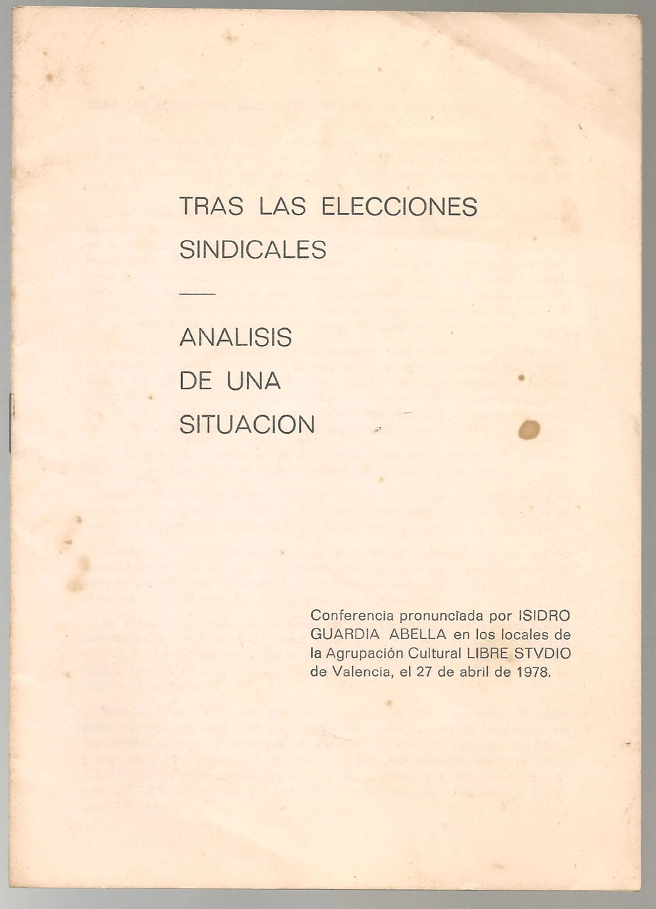 TRAS LAS ELECCIONES SINDICALES ANALISIS DE UNA SITUACION conferencia por .. En los locales LIBRE STUDIO Valencia 27 abril 1978