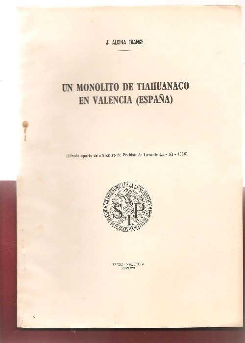 UN MONOLITO DE TIHUANACO (BOLIVIA) EN VALENCIA tirada aparte de Archivo de Prehistoria Levantina 1966