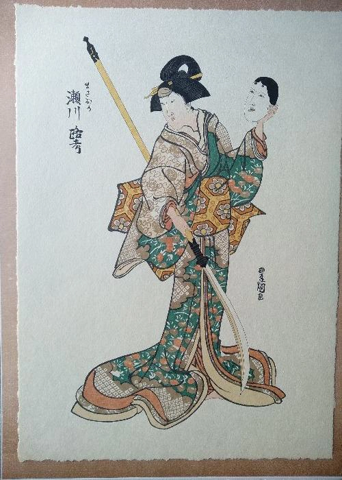 XILOGRAFÍAS DEL PINTOR JAPONES TOYOKUNI, retratos y escenas del teatro clasico japones,12 estampas xilografiadas